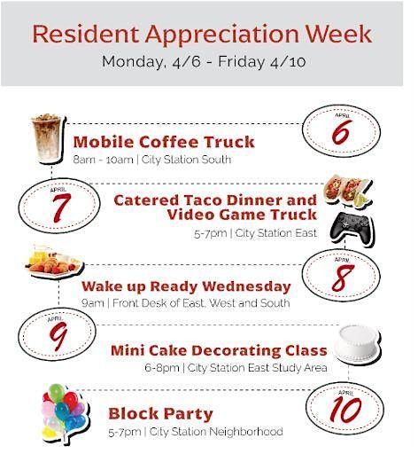 Resident Appreciation Week- College Suites at City Station 4/6-4/10