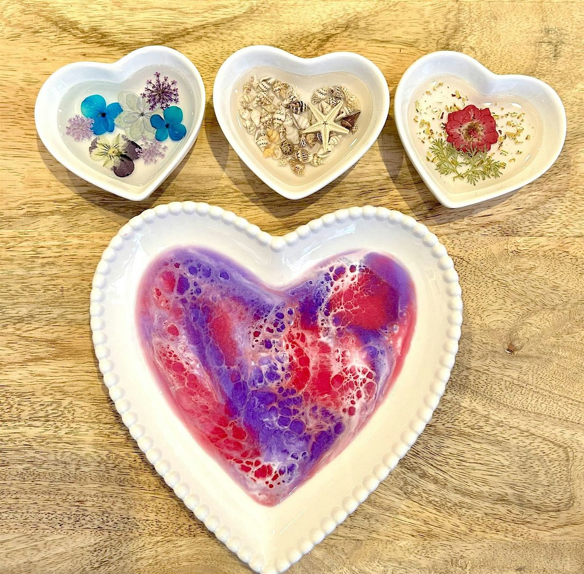 Resin Art Heart Dishes craft workshop in Montgomery County, Md.