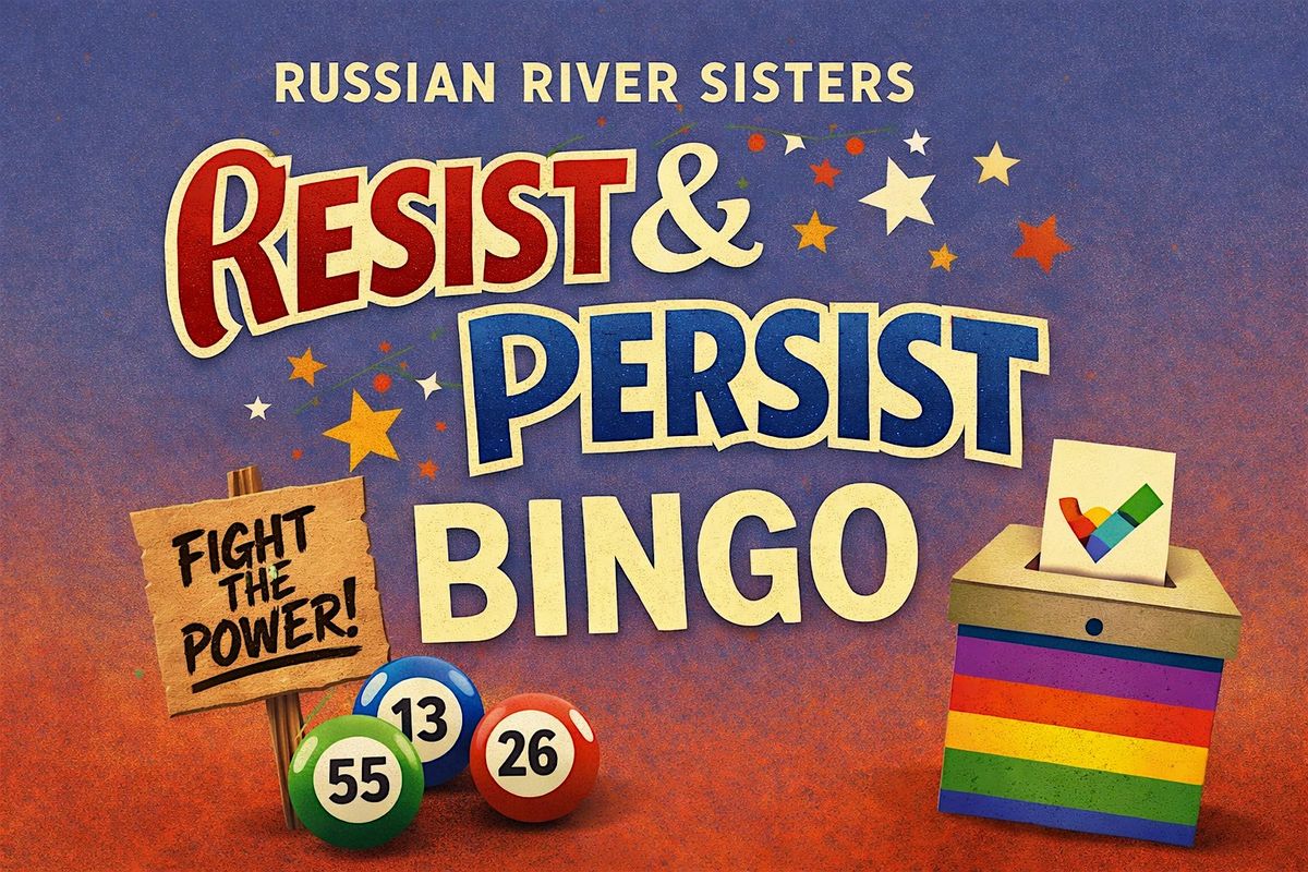 Welcome to “Resist and Persist” Bingo, where the Sisters serve righteous rebellion with rhinestones, civil sass with sequins, and just enough holy mischief to keep democracy nervous. The Russian River Sisters of Perpetual Indulgence are here to resist boredom, persist in fabulousness, and raise real-life funds with maximum sparkle and side-eye.