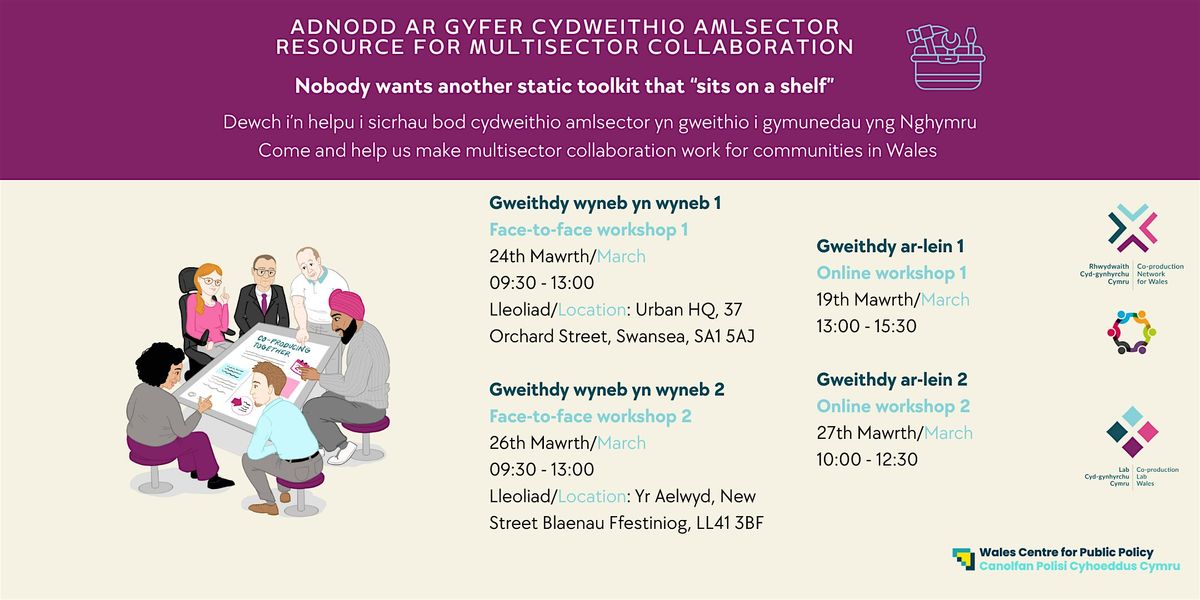 Mae’n bleser gennym eich gwahodd i ymuno â ni mewn grŵp creadigol i randdeiliaid sy’n benodol ar gyfer cyd-ddylunio adnodd newydd ar gyfer cydweithio amlsector yng Nghymru.