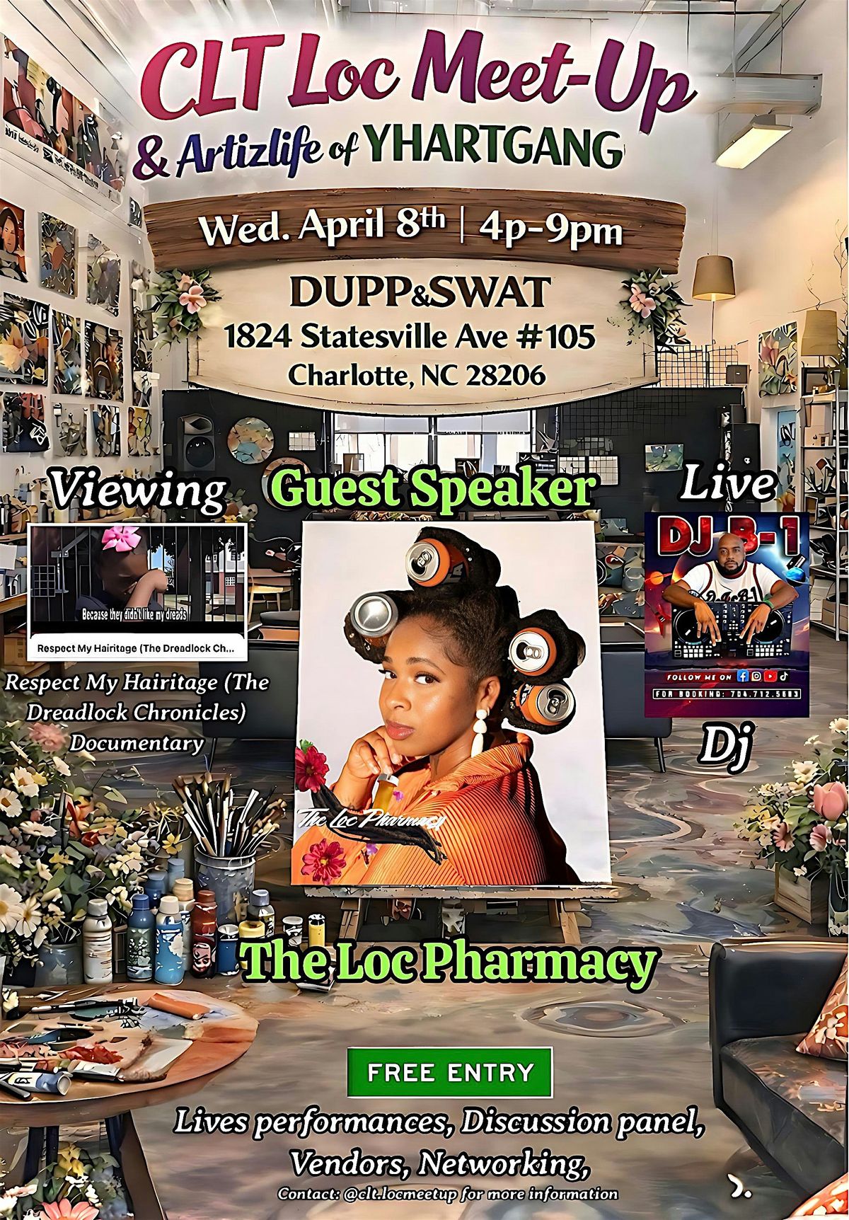 Join CLT LOC Meet-Up for our first event of the year! We're hosting a community viewing of Respect My Hairitage: The Dreadlock Chronicles, a documentary by Artizlife of YHArtGang exploring Charlotte's Loc culture and hair discrimination. The evening will also feature guest speakers from The Loc Ph*rm*cy, live DJ performances, Art, Vendors, and community connection.