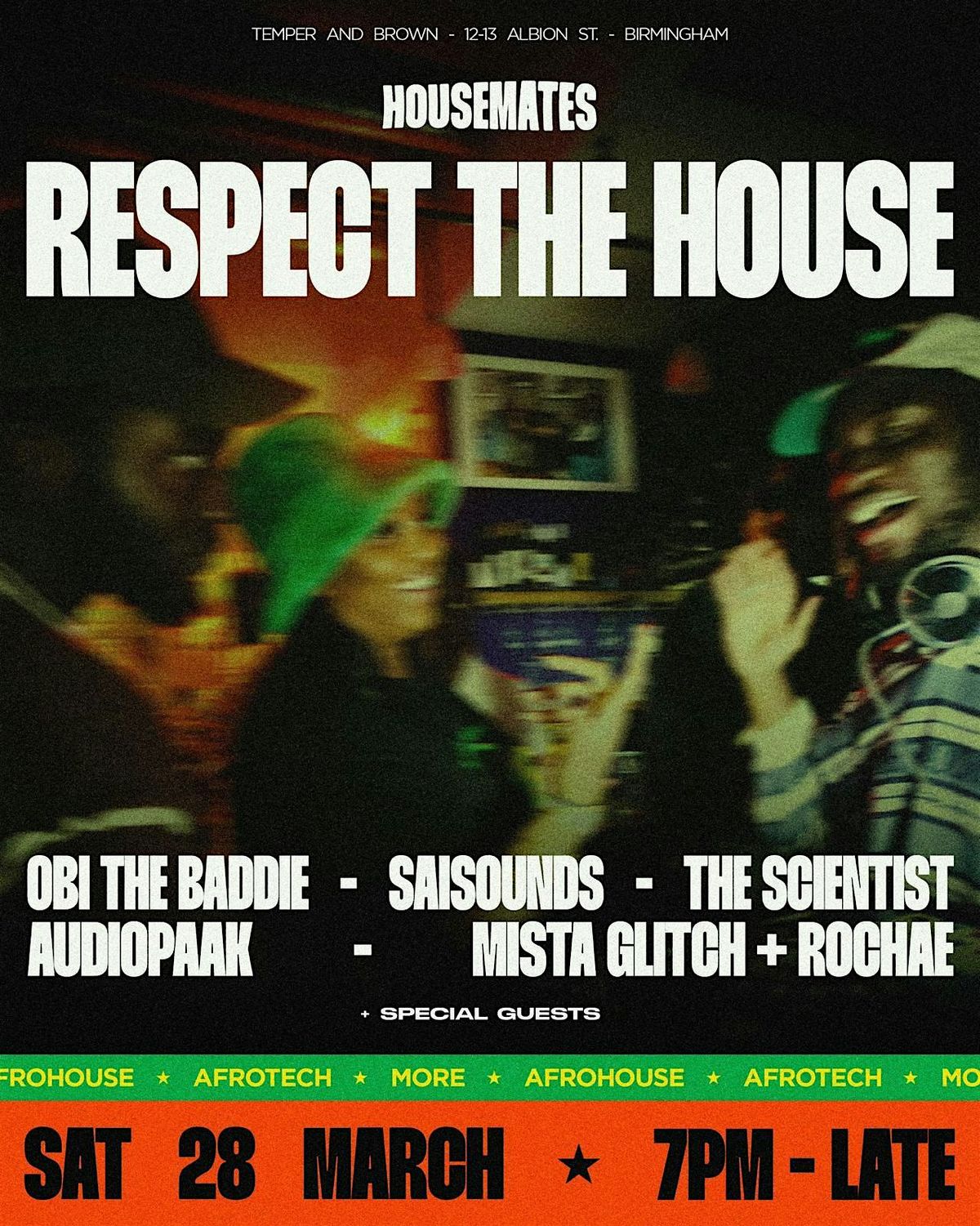 Respect The House at Housemates takes over Temper & Brown for a deeper celebration of AfroHouse and AfroTech culture. Expect a carefully curated journey from soulful, percussive rhythms to driving, hypnotic grooves music rooted in heritage but built for the future.
