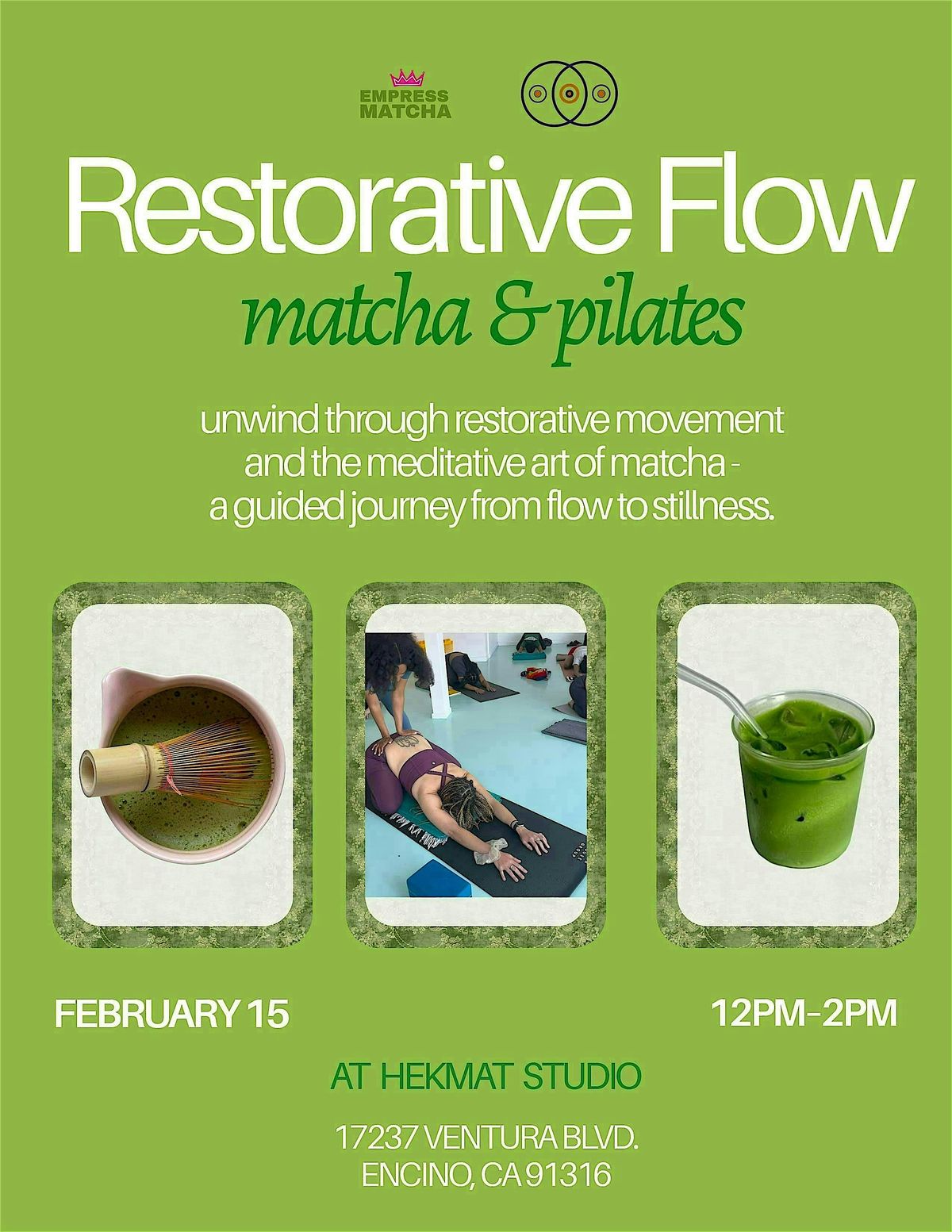 Transition from movement to stillness through the meditative art of matcha. We’ll start by moving slowly, on purpose, with restorative Pilates and deep stretches that unwind the hips, shoulders, and spine, quiet the mind, and bring you back home to your body.