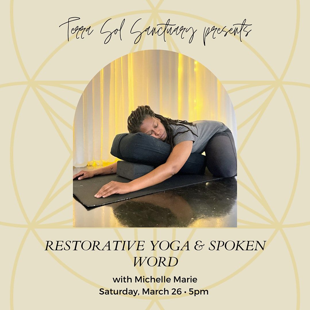 come relax and release while enjoying live poetry from an amazing local poet. restorative yoga is open to all - it is a gentle practice of using bolsters and blocks to sink comfortably into positions that allow light stretching and full release.