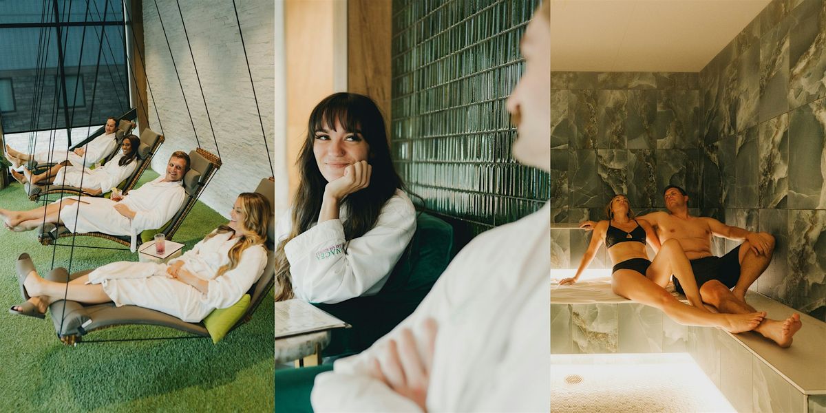 7-8:30 PM: Amenities + Dessert: We'll end our evening with time in Panacea's luxury amenities, including our Himalayan salt saunas, hot jetted hydrotherapy pool, cold plunge pool, eucalyptus steam room, and hanging loungers. During this time, continue to enjoy the wine and chocolates from your tasting, as well as a fresh made hot chocolate bomb by The Chocolate Cafe.
