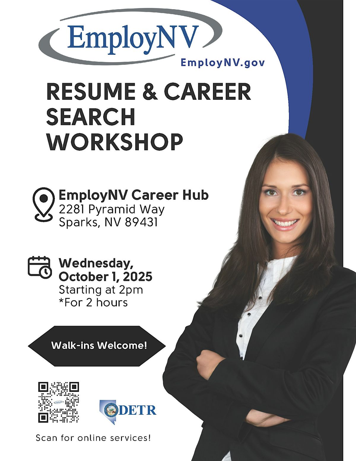 📍 EmployNV Career Hub, 2281 Pyramid Way, Sparks, NV 89431