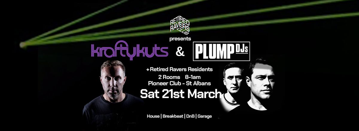 The Retired Ravers Club are thrilled to present not one, but two massive headliners. Two icons of dance music and pioneers of the breakbeat/house/bass scene - Krafty Kuts and Plump DJs!