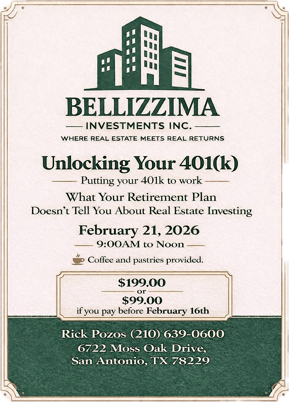 Ready to learn how to turn your retirement savings into real estate investments? Join us for this fun, in-person event where we'll break down the basics and show you the ropes. Whether you're a newbie or just curious, come hang out and get the scoop on making your money work harder through real estate!