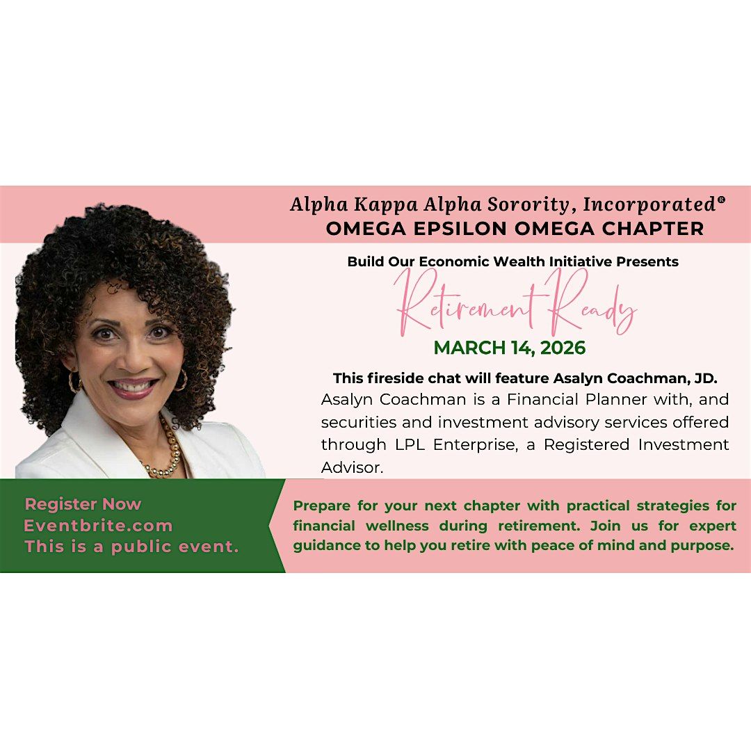 This Retirement Ready Fireside Chat is a financial wellness event hosted by the Omega Epsilon Omega Chapter of Alpha Kappa Alpha Sorority, Incorporated®, designed to support individuals at every stage of their retirement journey. Whether you are approaching retirement, currently retired, or proactively planning for the future you aspire to, this session offers practical guidance to help you navigate retirement with confidence.