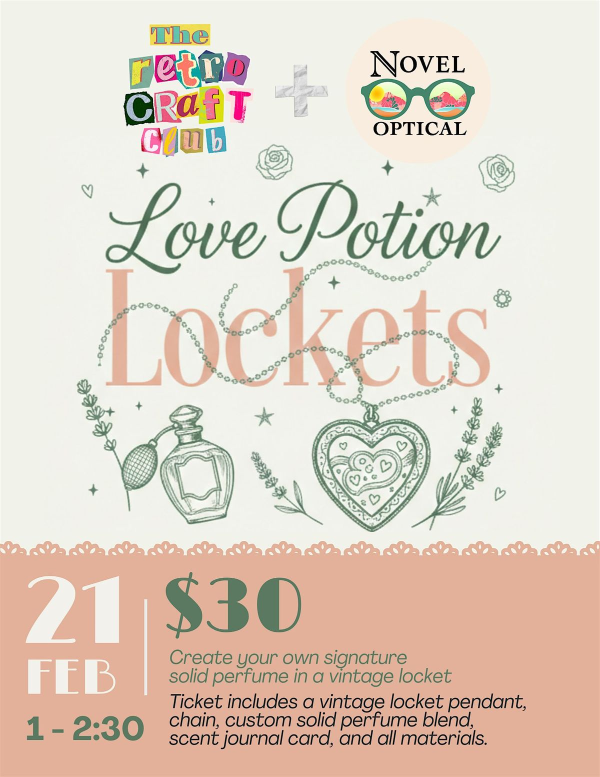 Join Retro Craft Club for a Valentine's-inspired workshop where you'll create custom solid perfume and house it in a vintage-inspired locket. This isn't your average craft class - it's part chemistry lab, part jewelry making, and 100% your vibe.WHAT YOU'LL CREATE:Learn the art of scent blending with top, middle, and base notes. Test different fragrance combinations to find your perfect "love potion."