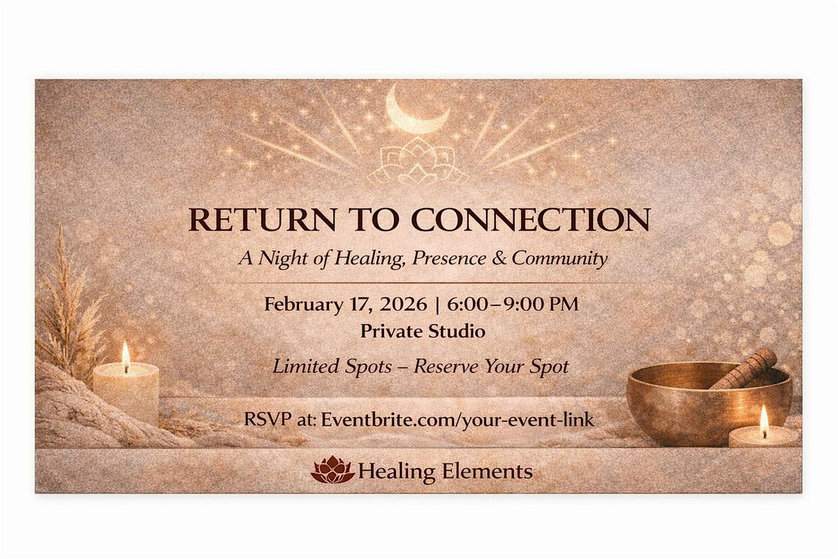 Return to Connection is a heart-centered evening designed to gently guide you back into relationship — with yourself, with others, and with the deeper sense of belonging we all crave.