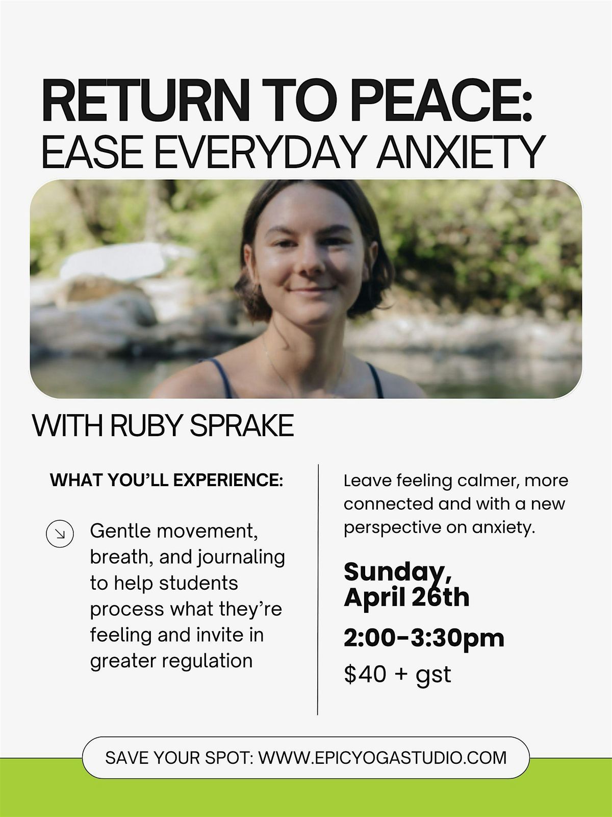 Participants will leave feeling calmer, more connected to themselves, and with a new perspective on anxiety. Attendees will be reminded nothing is wrong with them and that these feelings can be worked with, not fought against. Through simple practices and reflection, they’ll build deeper self-trust, learn a practical self check-in for anxious moments, and experience the support of being seen and understood in a shared space.