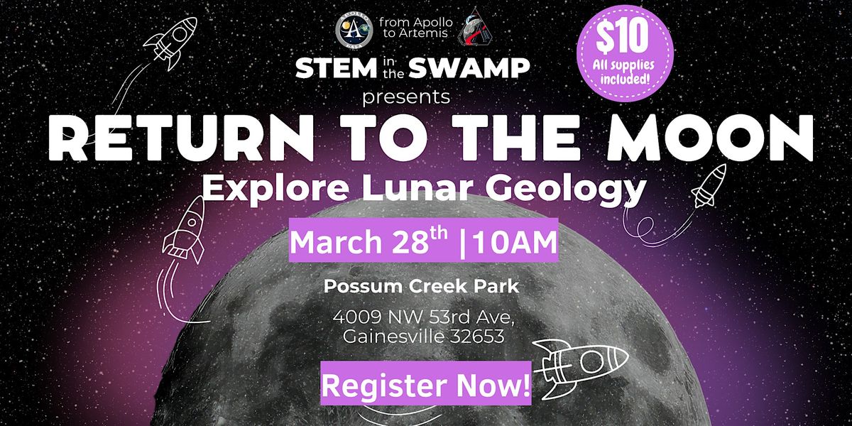 Join us for STEM in the SWAMP: Return to the Moon – Lunar Geology Series, where curious young minds will dive into the science of the Moon through hands-on, interactive activities.