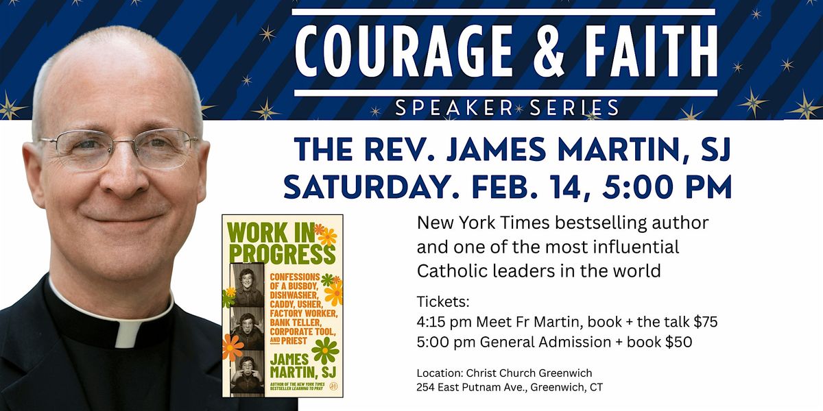 Courage & Faith Speaker Series offers a rare chance to hear the globally renowned Rev. James Martin tell his story in his own words—honest, funny, searching, and deeply faithful.