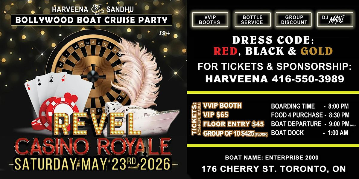 Toronto's Biggest Bollywood Boat Cruise Party VVIP BOOTHS/BOTTLE SERVICE/19+/CASINO ROYAL THEME/DJ MANI/GROUP DISCOUNT/BOLLYWOOD MUSIC/ VIPAgenda