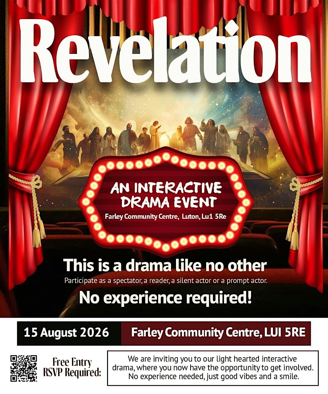 Welcome to the Revelation: An Interactive Drama event at the Hat Factory Arts Centre! Get ready for an immersive experience on July 25, 2026 at 7:30 AM (Europe/London time). Join us for a captivating journey filled with unexpected twists and turns. Let your imagination run wild as you become part of the story. Don't miss out on this unique opportunity to be a part of something truly special. See you there!