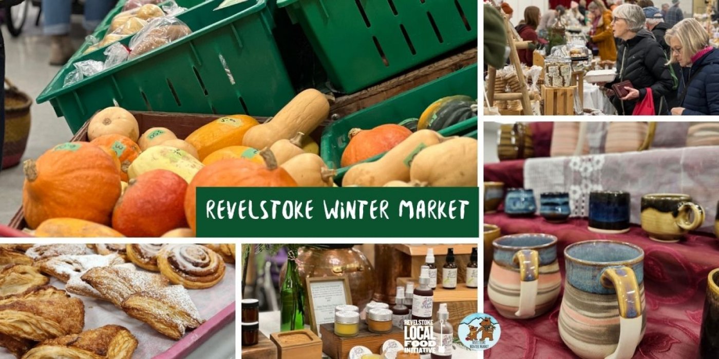 The Revelstoke Winter Market takes place every other week and hosts a variety of local and regional vendors. Shoppers can stock up on fresh produce and purchase items such as fresh eggs meat coffee wine cider baked goods indian and ukrainian food as well as art and craft items like jewellry pottery cosmetics and house decor.