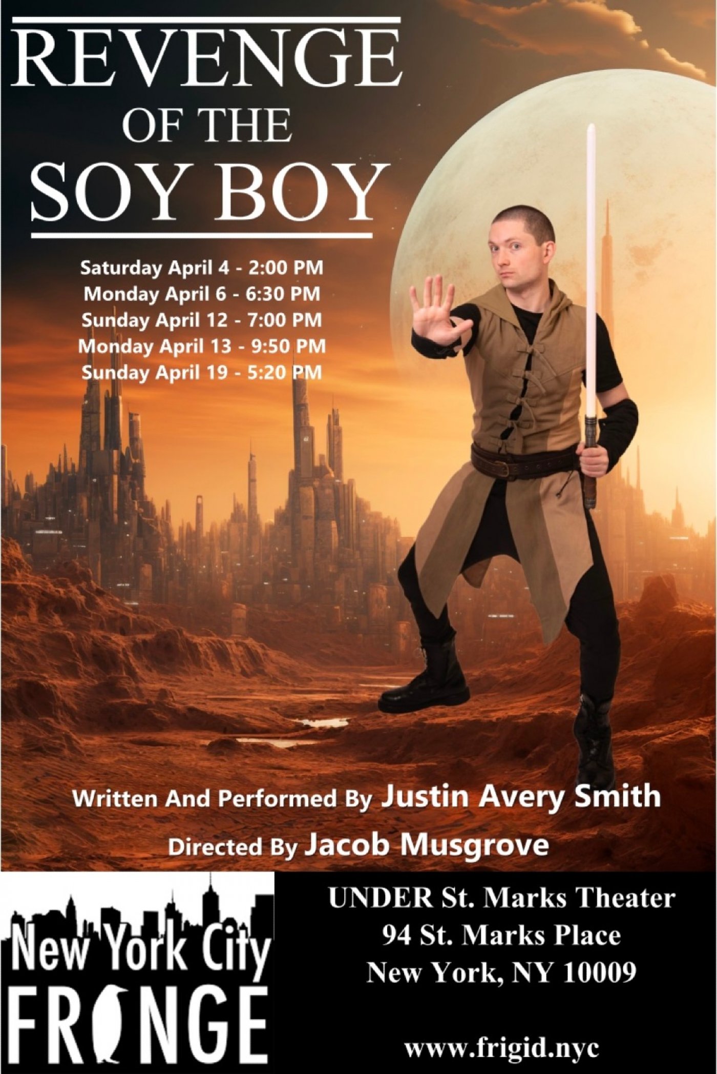 Tickets ($15) for Revenge of the Soy Boy are available for advance purchase at www.frigid.nyc. The performance will run approximately 30 minutes. Performances will also be available to livestream.