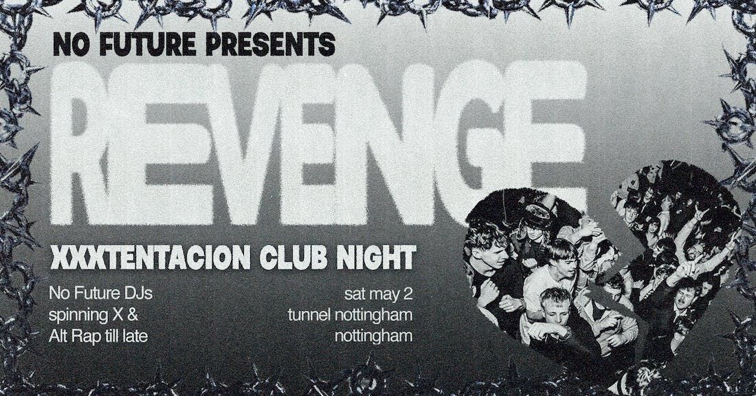 ⛓️ SHE TOOK MY HEART AND LEFT ME LONELY ⛓️REVENGE: XXXTENTACION CLUB NIGHTSATURDAY 2ND MAY 2026TUNNEL NOTTINGHAM DOORS AT 10:30PM18+