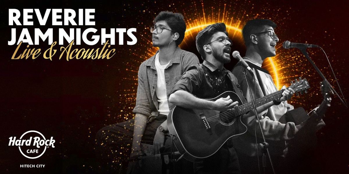 For this special Reverie Jam Session at Hard Rock Cafe, Reverie Music presents an acoustic trio featuring Ishaan, Vishnu, and Bhagath. Ishaan is a Hyderabad-based musician and founder of Reverie Music known for expressive acoustic performances, Vishnu is a singer-songwriter with a soulful and emotive indie-pop style, and Bhagat is a dynamic cajon player whose energetic grooves bring rhythm and movement to every performance.