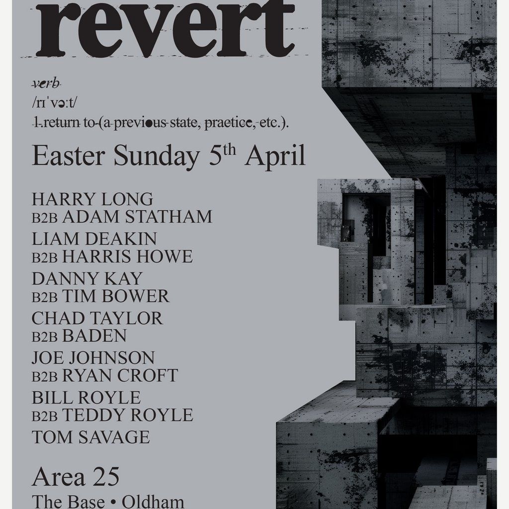 REVERT at The Base, Oldham Easter Sunday 5th April -7pm - 3amAll resident back to back all night