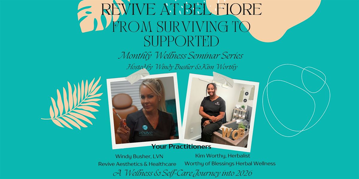 Your evening includes a complimentary mini wellness consultation, a hands-on tea blending workshop, a guided wellness reflection checklist, and time for one-on-one questions. Led by Windy Busher, LVN of Revive Aesthetics & Healthcare, alongside Kim Worthy of Worthy of Blessings Herbal Wellness, this experience offers practical tools, education, and space to reset as you move into the new year feeling grounded and supported.