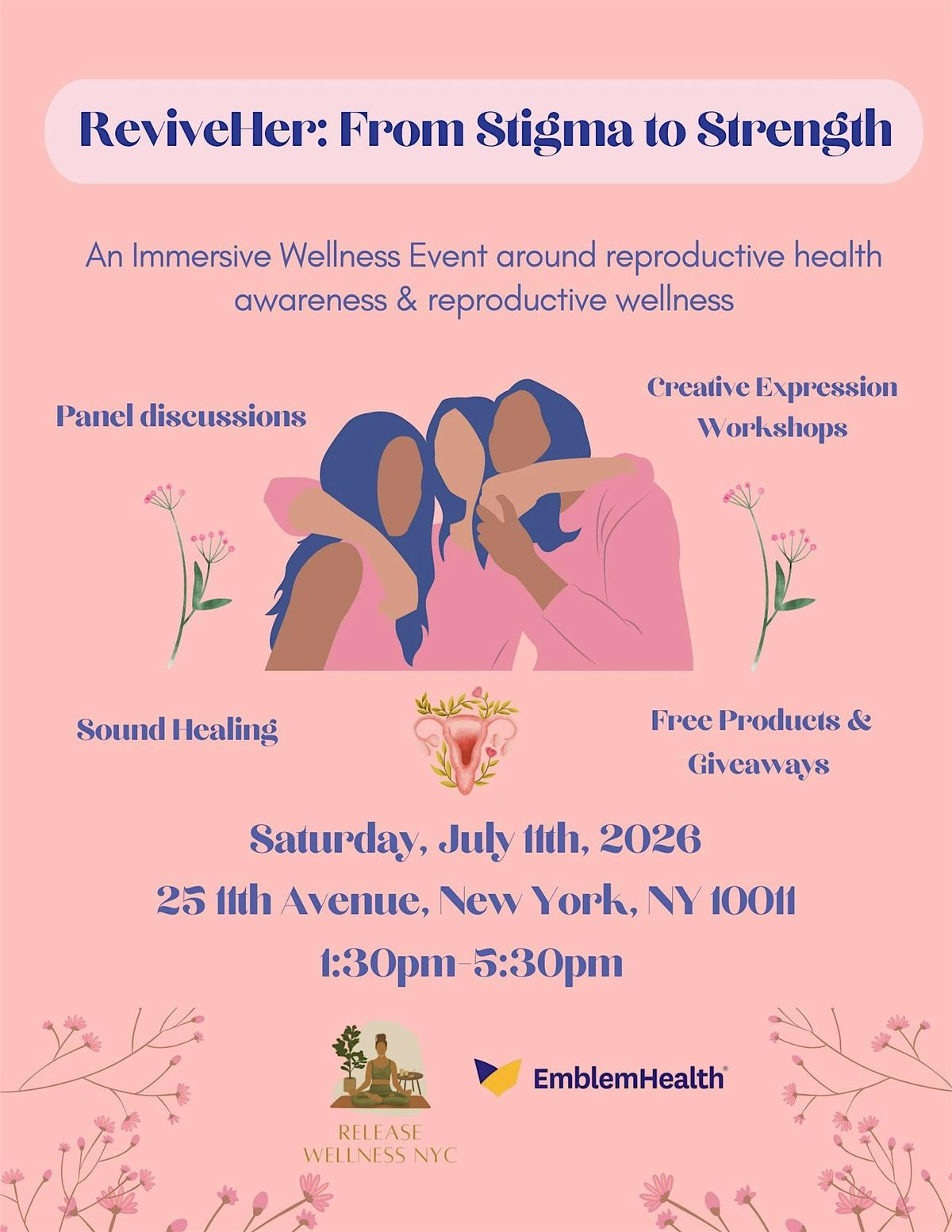 Join us in person for ReviveHer: From Stigma to Strength. This will be a free immersive wellness event honoring reproductive health awareness month. Step into a space where healing meets understanding, and shame transforms into strength. This gathering combines the power of sound therapy, creative expression, and collective wisdom to nurture your reproductive wellbeing.