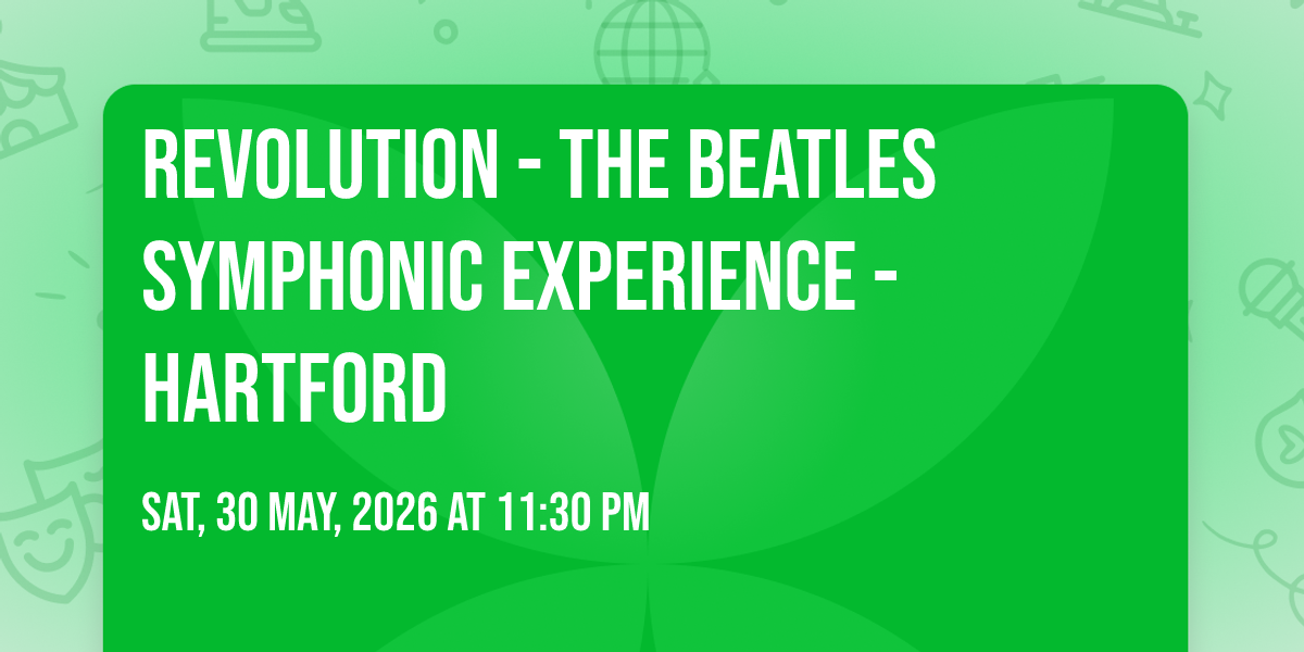 π Location: 41.7629, -72.6806β¨ Embark on an extraordinary journey at Revolution - The Beatles Symphonic Experience - Hartford, where every moment promises to be unforgettable! π Imagine of transforming William H. Mortensen Hall at The Bushnell in the heart of Hartford, CT into a realm of endless possibilities. π Join us on May 30th, 2026 at 11:30 PM for an experience that will challenge your imagination and exceed your expectations. π― This carefully curated event combines the finest elements of entertainment, innovation, and community spirit. Whether you're an adventure seeker, culture enthusiast, or someone looking for unique experiences, this event offers something special for everyone. π Don't miss this chance to be part of something extraordinary!
