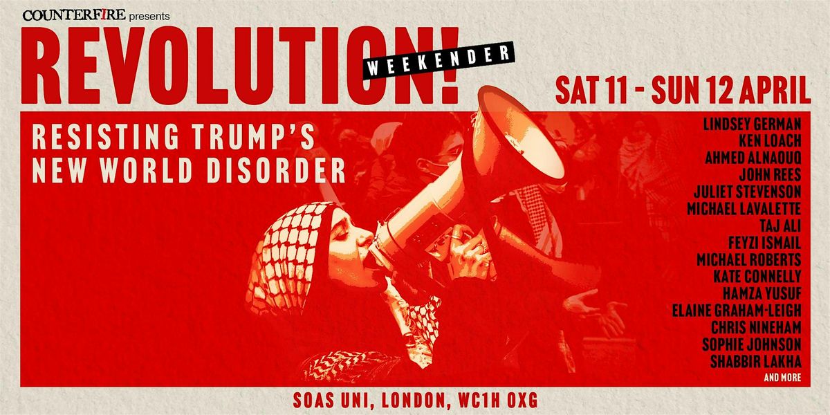 Revolution! will bring together a brilliant line up of activists, writers and campaigners to discuss the situation and how best to respond. Speakers include: Lindsey German, Ken Loach, Ahmed Alnaouq, John Rees, Juliet Stevenson, Michael Lavalette, Taj Ali, Feyzi Ismail, Michael Roberts, Kate Connelly, Hamza Yusuf, Elaine Graham-Leigh, Chris Nineham, Sophie Johnson, Shabbir Lakha, and more!