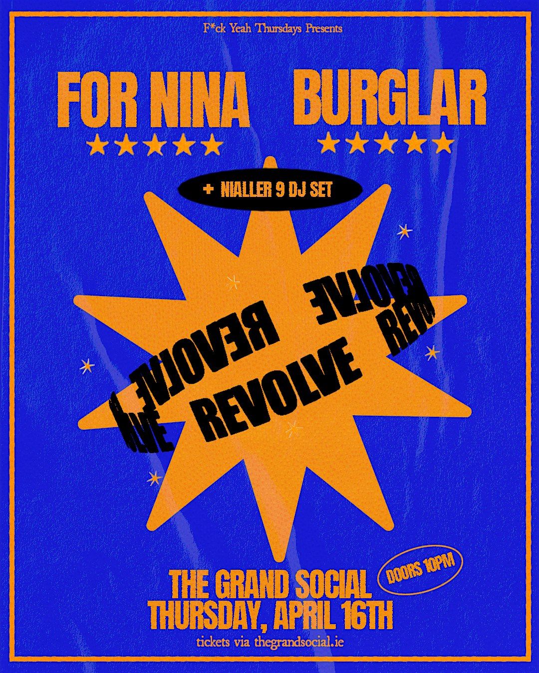 REVOLVE Thursdays are back with two heavy hitters in For Nina & Burglar followed by an excslusive DJ set from Irish music legend Nialler9