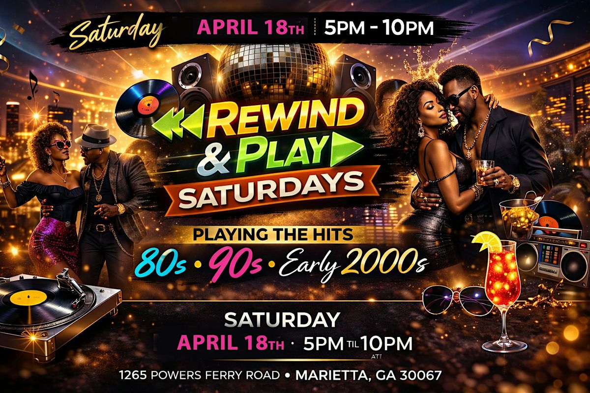 Rewind & Play Saturdays at Euro ATL is Marietta’s ultimate grown and sexy early evening party featuring the best hits from the 80s, 90s, and early 2000s.