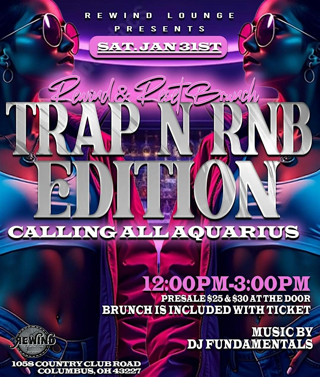 REWIND LOUNGE PRESENTS REWIND& RESET TRAP N R&B BRUNCH‼️ CALLING ALL AQUARIUS JAN 31 12-3PM COME CATCH A VIBE W DJ FUNDAMENTALS