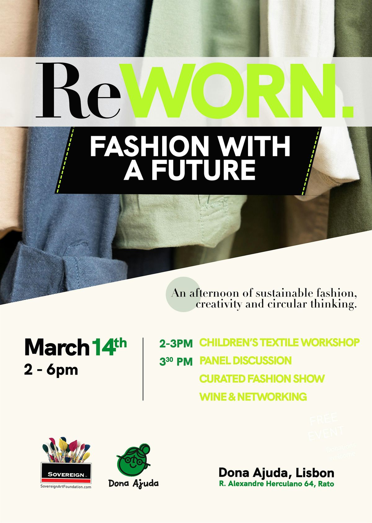 Join the Sovereign Art Foundation and Dona Ajuda for an afternoon of sustainable fashion, creativity and circular thinking.