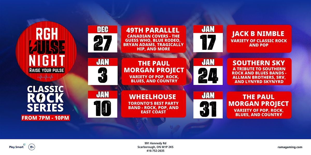 Don’t miss this chance to celebrate Southern Rock and Blues with Southern Sky at RGH Pulse Night. Mark your calendar, gather your friends, and experience the timeless hits of the Allman Brothers, SRV, and Lynyrd Skynyrd performed live. This show promises a night full of energy, nostalgia, and unforgettable musical moments. Come enjoy Southern Sky at Rama Gaming House.
