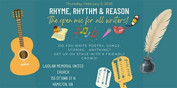 Welcome to Rhyme, Rhythm & Reason - open mic for all writers. Whether you write songs, poetry, fiction or non-fiction, you're welcome to come on stage and share - including works in progress. 5-10 minutes per person (anticipated... depending on attendance!)