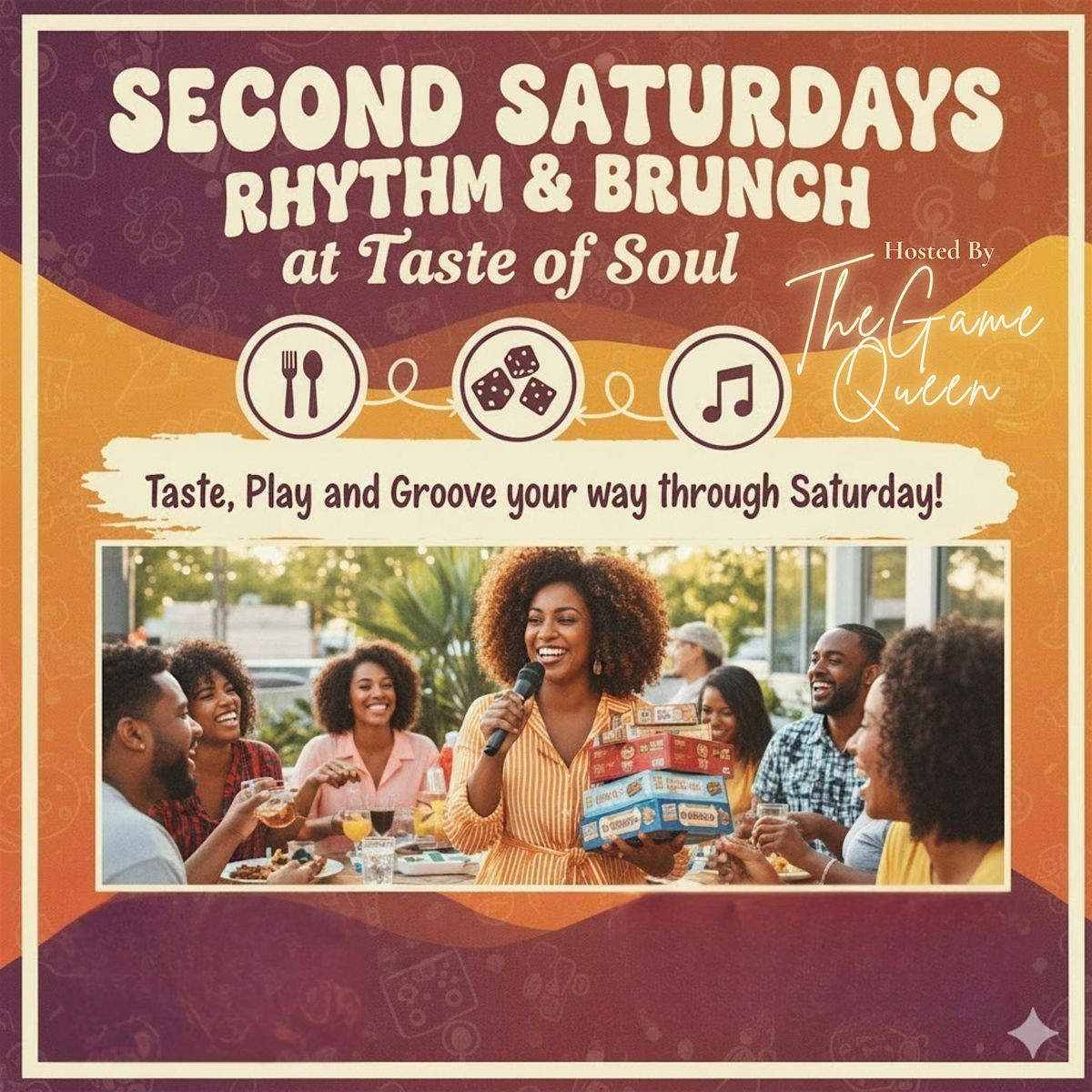 Taste, play & groove at Second Saturdays Rhythm & Brunch! Music-inspired games, great food & good vibes at Taste of Soul.