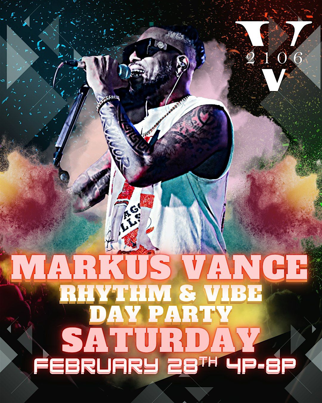Join us for an unforgettable daytime experience at the Rhythm & Vibe Day Party featuring Markus Vance 🎧 on Saturday, February 28 from 4PM–8PM at Venue 2106 ✨