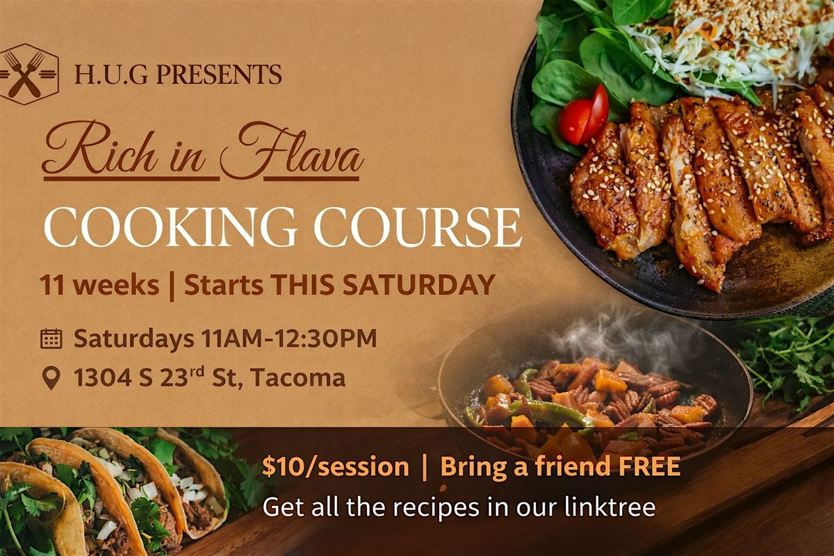 Rich in Flava is an 11-week, Afro-American inspired cooking course rooted in culture, confidence, and community. This hands-on series is designed to help participants build foundational cooking skills, explore flavor with intention, and make classic dishes their own all while cooking alongside others in a welcoming, music-filled space.