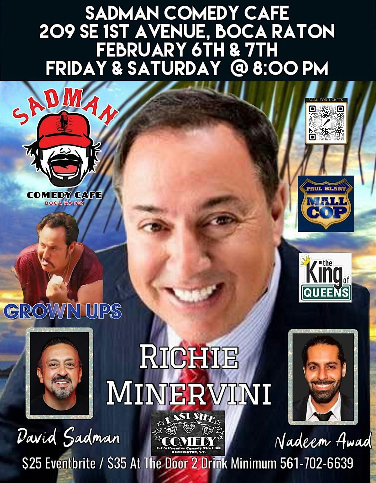 Prepare for a night of unforgettable laughter with the legendary Richie Minervini at Sadman Comedy Cafe in beautiful Boca Raton, FL!