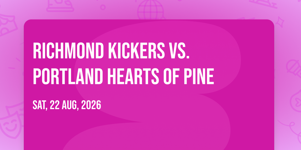 π Location: 37.5494, -77.4871β¨ Embark on an extraordinary journey at Richmond Kickers vs. Portland Hearts of Pine, where every moment promises to be unforgettable! π Imagine of transforming City Stadium in the heart of Richmond, VA into a realm of endless possibilities. π Join us on August 22nd, 2026 at 11:00 PM for an experience that will challenge your imagination and exceed your expectations. π― This carefully curated event combines the finest elements of entertainment, innovation, and community spirit. Whether you're an adventure seeker, culture enthusiast, or someone looking for unique experiences, this event offers something special for everyone. π Don't miss this chance to be part of something extraordinary!