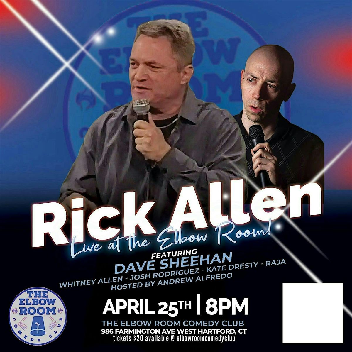 Your headliner is Rick Allen! He's been performing stand-up comedy throughout the country for over 15 years, with performances at venues like the Borgata in Atlantic City and the Mohegan Sun Casino in Connecticut. He's described as a "true professional." His comedy is described as relatable with a New York attitude. He also incorporates observational comedy and audience interaction into his act.