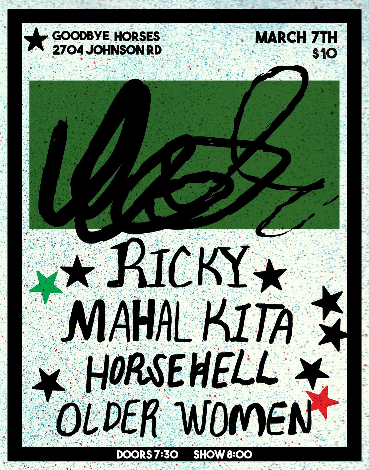 Don't miss RICKEY, Mahal Kita, Horsehell, Older women live at Goodbye Horses!