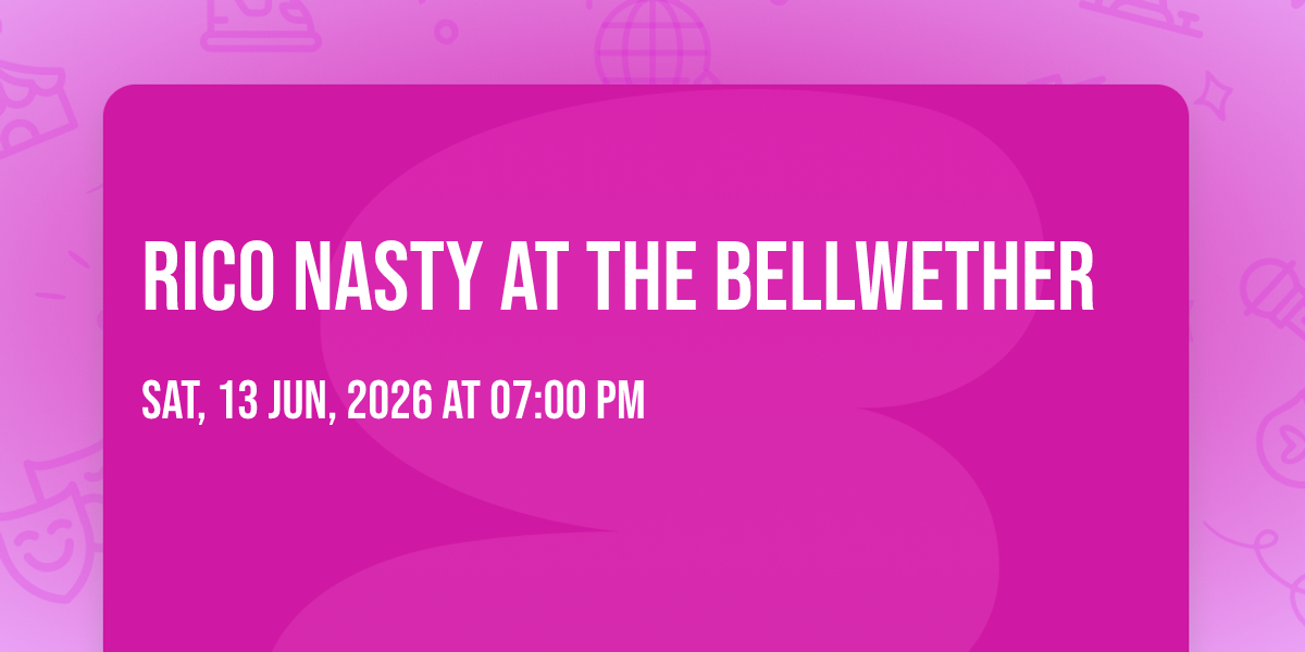 ✨ Embark on an extraordinary journey at Rico Nasty at The Bellwether, where every moment promises to be unforgettable! 🌟 Imagine of transforming The Bellwether in the heart of Los Angeles, CA into a realm of endless possibilities. 📅 Join us on June 13th, 2026 at 07:00 PM for an experience that will challenge your imagination and exceed your expectations. 🎯 This carefully curated event combines the finest elements of entertainment, innovation, and community spirit. Whether you're an adventure seeker, culture enthusiast, or someone looking for unique experiences, this event offers something special for everyone. 🎊 Don't miss this chance to be part of something extraordinary!