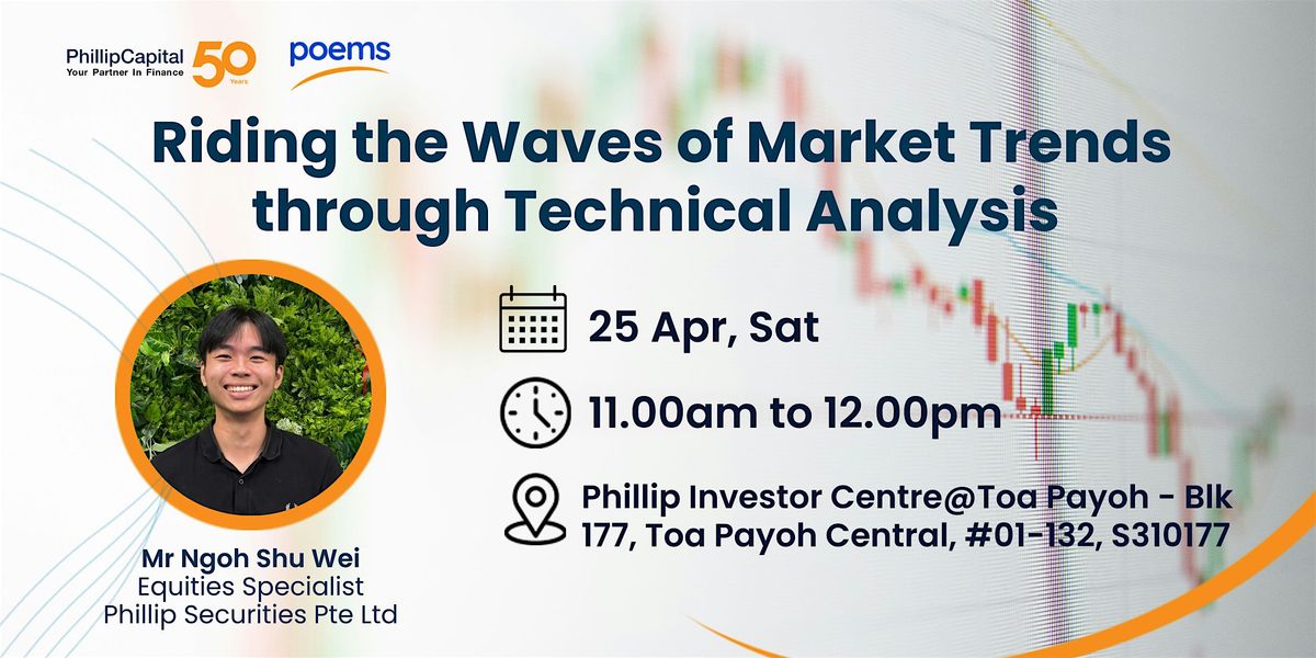 Join us at this seminar on 25 Apr, Sat at 11am, where Mr Ngoh Shu Wei, Equities Specialist at Phillip Securities, will guide you through the world of charts, patterns, and indicators. Learn how to read stock price movements, identify trends, and predict future price action. We'll also explore candlestick patterns, moving averages, and the Relative Strength Index (RSI) to help you ride the waves of market trends. Register now!
