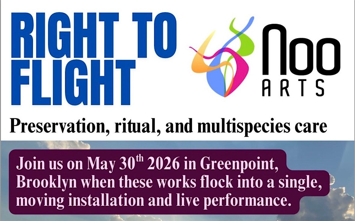 On May 30, 2026, Noo Arts welcomes Right to Flight: a rooftop installation and live performance on the Kingsland Wildflowers green roof in Greenpoint, asking a simple but urgent question: Who is the city for?