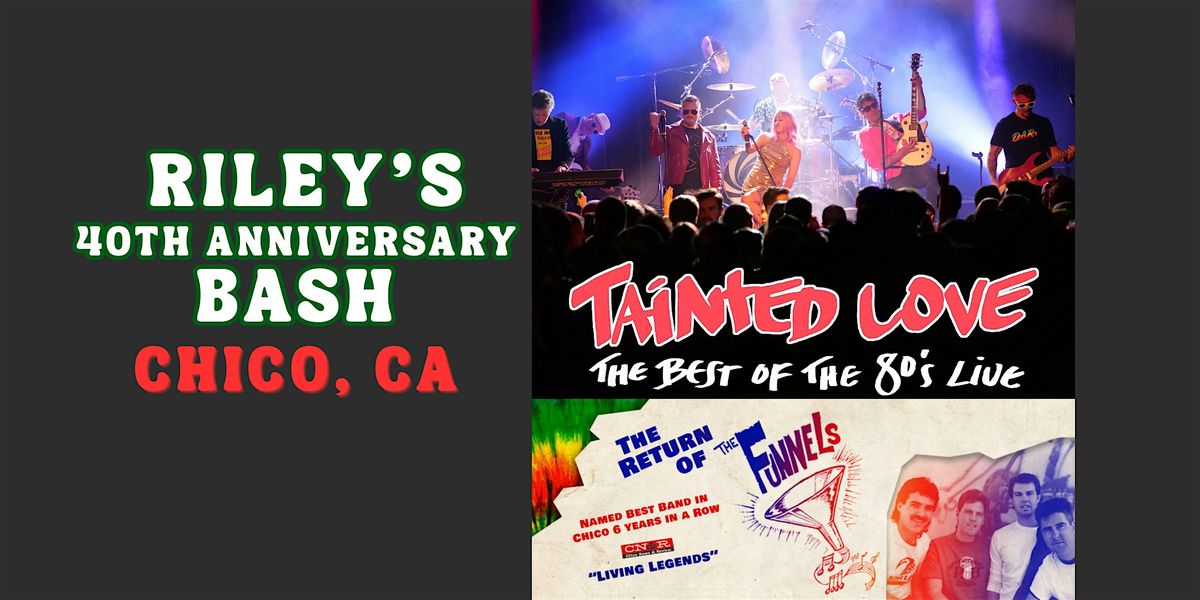 This event is 21+ only. Your ticket gets you into our Anniversary event at Riley's from 1:00 PM - 10:00 PM with multiple DJs and live musical performances from Tainted Love: The best of the 80's live, The Funnels: Voted Chico's best party band 6 years in a row, and The Dependents.