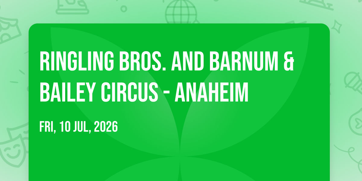 π Location: 33.8078, -117.876π Be part of history at Ringling Bros. and Barnum & Bailey Circus - Anaheim, an extraordinary gathering that will captivate your imagination! ποΈ The prestigious Honda Center in Anaheim, CA sets the stage for an unforgettable experience on July 19th, 2026 at 10:00 PM. β¨ They are bringing together the finest elements of entertainment and innovation to create moments that will take your breath away. From the moment you arrive, you'll be immersed in an atmosphere of wonder and excitement. π― This carefully planned event ensures every guest experiences something truly special. π Early booking is recommended for this must-attend event of the season!