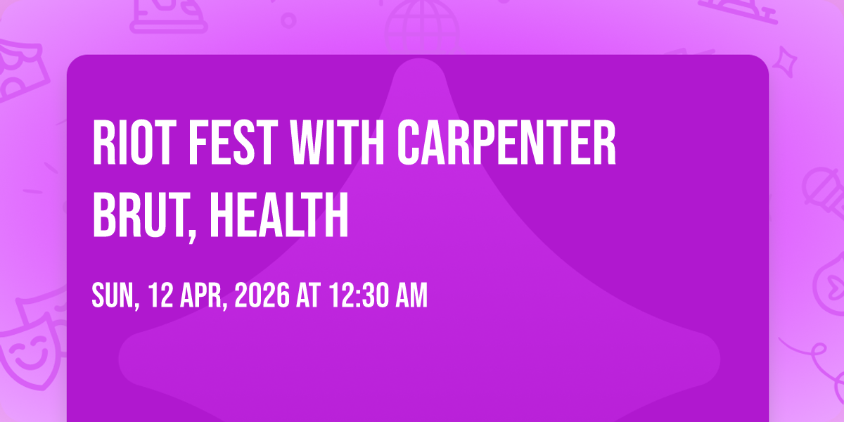 π Location: 41.9065, -87.6594π Step into a world of wonder at Riot Fest with Carpenter Brut, HEALTH, where extraordinary moments await! ποΈ Located at The Salt Shed - Indoors in dynamic Chicago, IL, this event will become the talk of the town. π Join us on April 12th, 2026 at 12:30 AM for a celebration that defies the ordinary. β¨ This curated experience brings together the best of entertainment, culture, and community spirit. Every detail has been thoughtfully planned to ensure an unforgettable experience for all our guests. π― Take advantage of this opportunity to be part of something special. π Early registration is recommended as space is limited!