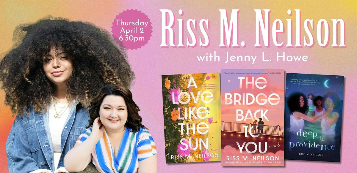 Join us for an evening of romance to celebrate the release of USA Today bestselling author Riss M. Neilson's newest novel, The Bridge Back to You! Riss will be in conversation with acclaimed romance author, Jenny L. Howe.