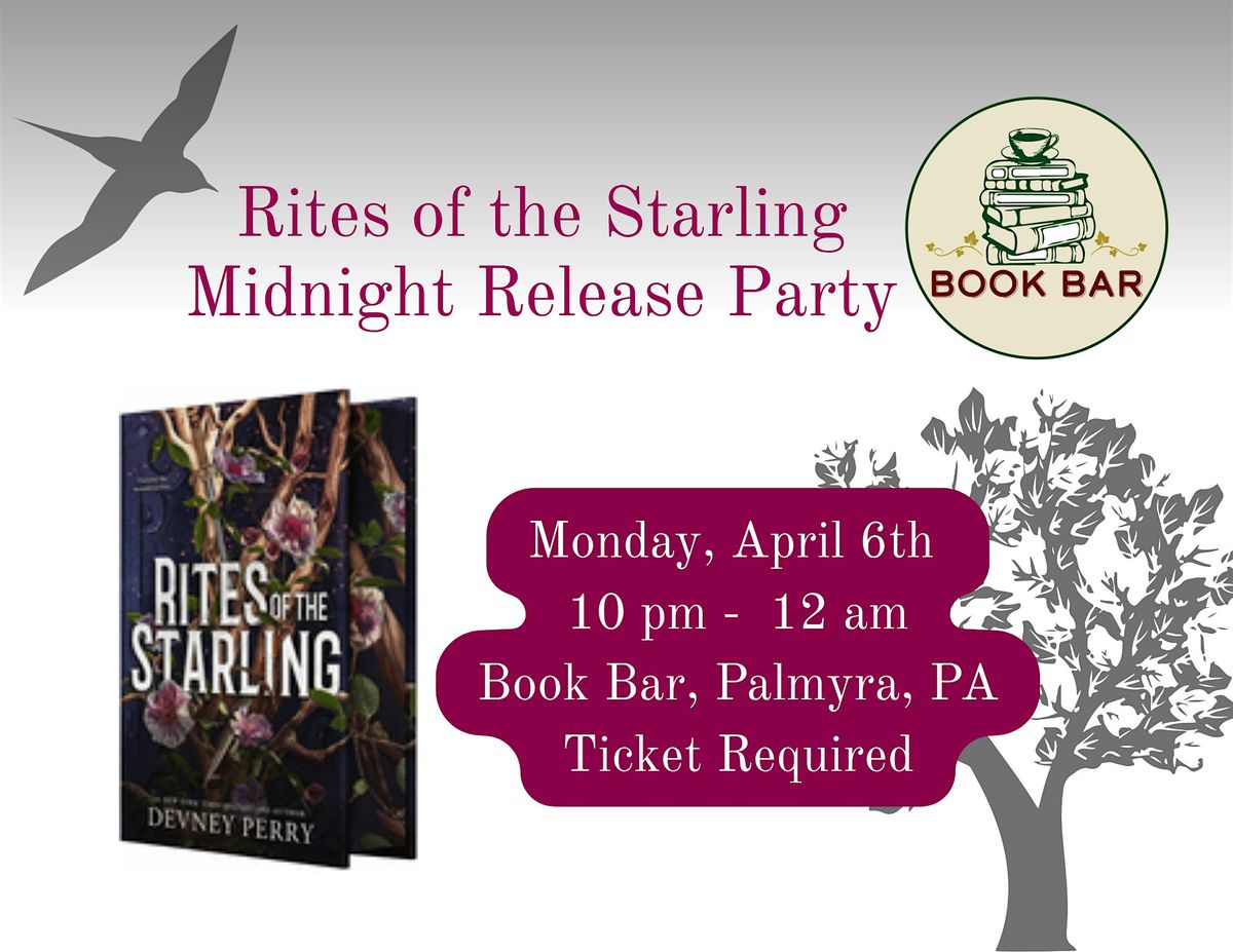 Join us in celebrating the release of the new romantasy book from Devney Perry, Rites of the Starling, the highly anticipated follow up to Shield of Sparrows! Your ticket includes a deluxe, sprayed edge hardcover copy of the book, refreshments, activities (including Shield of Sparrows Trivia) and special surprises at the event! It's sure to be an evening of fun, so don't miss out and grab your ticket now.